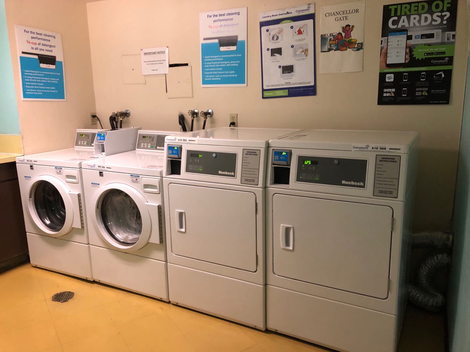 洗衣房在公寓大楼内,手机刷卡使用。